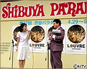 5月2日、渋谷ハチ公前に出来上がった「渋谷パラダイス」のメイン会場にて、横浜美術館学芸員新畑泰秀さんと現在ラジオ日本でパーソナリティをしている延友陽子さんによって、前日にルーヴル美術館展の入場者数が10万人を突破したのを記念してイベントが行われました。