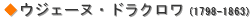 | ダンテ、シェイクスピアなどの文学作品に想を得た、強烈な色彩によるドラマティックな構図を特徴とする作品は、近代絵画の先駆となり、やがて世紀後半に登場する印象主義の画家たちにも大きな影響を与えました。