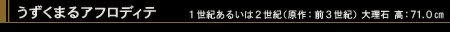 | 美と愛の女神ヴィーナスが裸身で表現された最初の作例は、前4世紀の彫刻家プラクシテレスが制作してクニドス島が購入した《クニドスのアフロディテ》とされるが、その立像も水浴のために衣を脱ぎすてた美神の姿であった。ヘレニズム時代にはうずくまって水浴をするアフロディテ(ヴィーナス)像が登場し、神というよりは生身の女性の私的な日常生活を想起させるような姿態がローマ時代にはとりわけ好まれて、数多くのコピーおよびそのヴァリエーションが制作された。「ロードス・タイプ」に準ずる本作は、顔を右側に傾けて髪の水を絞ろうとする姿で、そのために上半身があらわとなっている。ルネサンス以降の西洋美術で主要なモティーフのひとつとなる「水浴する女性」「化粧室の女性」のルーツはこれら古代ギリシア彫刻にある。 |