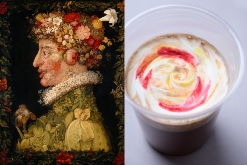 アルチンボルドの《春》より。パッションフルーツとラズベリーのソースを合わせたフルーティーで濃厚なチョコレートドリンクです。