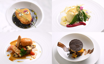 本展に出展される4作品からインスピレーションを得て表現した前菜、魚料理、肉料理、デザートからなる限定コース。正統派フランス料理とアートのコラボレーションをお楽しみください。