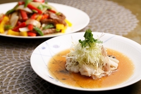 (手前)ナポレオンフィッシュの蒸しもの香港スタイル