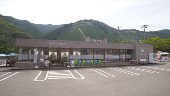 御岳渓谷を望む多摩川沿いに去年オープンしたカフェレストラン「MITAKE TERRACE」。