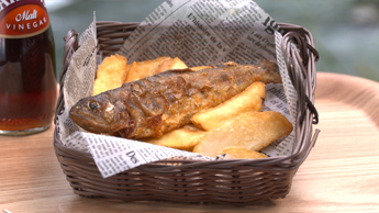 中でも目玉は、地元の特産「奥多摩やまめ」を丸ごと揚げたフィッシュ&チップス。