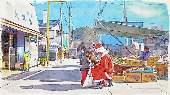 千葉・勝浦朝市で子ども達に笑顔を届けるサンタ