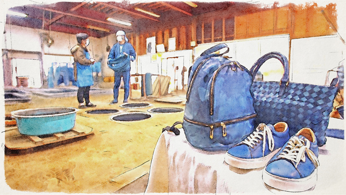 埼玉・羽生市 革の藍染