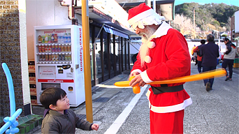 千葉・勝浦朝市で子ども達に笑顔を届けるサンタ