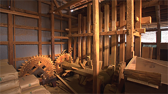 水車小屋で作られているのは、この地で多くとれる杉の葉を砕いた、「杉粉(すぎこ)」。