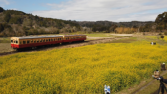 千葉県市原市を走る「小湊鉄道」の沿線に広がる、「石神 菜の花畑」。