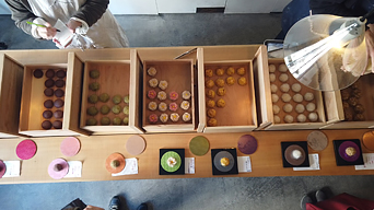 小川さん自身のアイデアを盛り込んだ、見た目鮮やかなおはぎも並びます。