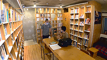 およそ1万冊の蔵書と、自家製ソーセージを使ったホットドッグが人気のお店。