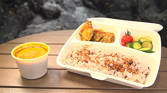 大自然の中で本格的なスパイスカレー弁当などを味わえます。