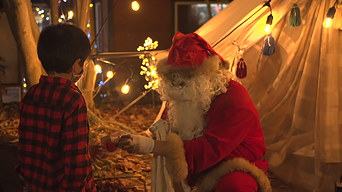 それは、今年新しく建てたテントに待っている、サンタクロース!