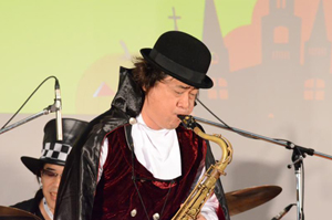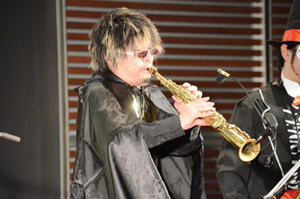 最初にステージに登場したのが、リーダーでソプラノサックスのひび則彦さんと、アルトサックスの染谷真衣さん。