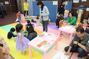 ブロック、絵本、ぬり絵などがいっぱいのキッズゾーンも登場!お子さんたちはもちろん、ママ・パパにも好評でした。