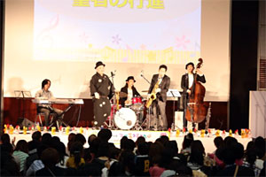 「♪幸せなら手をたたこう」「♪アンパンマン」「♪ドレミのうた」「♪さくらさくら」「♪Let It Go(アナと雪の女王より)」「♪さくら(森山直太郎)」など、みんなの大好きな楽曲を見事にJAZZアレンジ!みんな、目が真剣です!