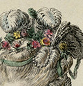 1770年頃、華やかな盛り上がりをみせていたパリのファッション界を10代半ばで目の当たりにしたマリー・アントワネットは、最新の流行に夢中になりました。その情熱は服や靴、アクセサリーだけでなく髪型にも・・・。当時の版画には、髪の毛を高く盛り、複雑な編み込みを施したマリー・アントワネットの姿が残されています。