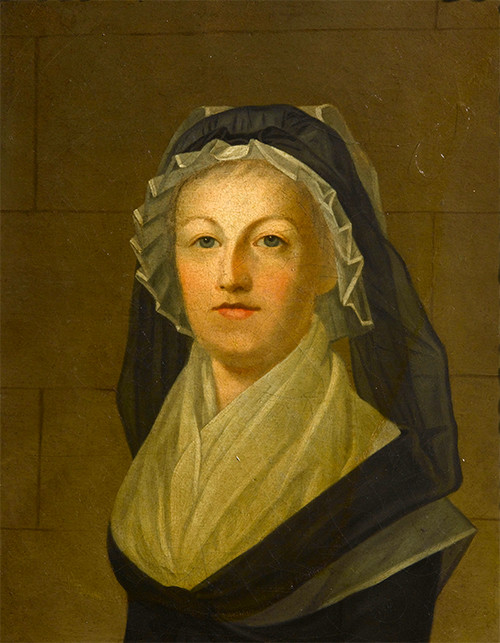 1789年にヴィジェ・ル・ブランが亡命した後、クシャルスキがマリー・アントワネット付きの画家になった。これは王妃の最晩年を描いた1点である。厳かで堂々とした「カペー未亡人」は、白いヴェールとフィシュ〔三角形の肩掛け〕、ヘアバンド、黒いタフタ織の外套という喪服姿である。心を打つこの肖像画は、モデルがポーズを取っている間に描かれた未完のパステル画に想を得ている。逃亡を図った国王一家がヴァレンヌで捕らえられた事件によって、ポーズは中断された。その後1793年初めにタンプル塔で描かれたエスキース〔習作〕を基に制作が再開された。ヴェルサイユが所蔵するこの絵は、クシャルスキによる数々のレプリカの一点である。多くのレプリカが制作されたことは、王政復古以降、マリー・アントワネットが君主政の殉教者として崇拝の対象となった証である。