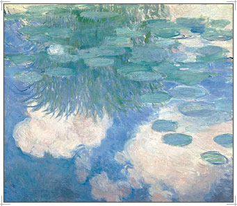 この作品もこうした晩年の一連の創作活動から生まれたもののひとつであろう。水面に映る青空と白い雲のコントラストが印象的だ。《睡蓮》をモチーフにしてはいるが、ここでは水面の反映それ自体がモネの関心であるのが明らかだ。