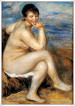 本作を描いた前年からその年にかけてルノワールはイタリア旅行に出かけ、ラファエロのフレスコ画やポンペイの壁画に感嘆した。その頃、画家自身は変化の多い屋外の光の描写に行きづまりを感じていたが、旅行が解決の一つの糸口を与えてくれた。帰国後しばらくして次第に印象主義から離れ、古典に回帰する。主題の上では晩年にかけて彼の主要なテーマとなる裸婦像が多くなり始め、その場面設定もそれまでの現実の戸外から神話的あるいは牧歌的な自然へと移行するのである。本作はその最初期の制作である。海浜の設定だが、光は明らかにアトリエ制作を示している。イタリアの古典作品から示唆を得て、その全体の調和を考えた描写が意図された。女性の姿勢もいささか古典的で、作為的だが、後に息子のジャンに語ったような「若い娘の、薔薇色で、血が健康にまわっているのが目に見えるような肌」への讃美がこの小さな作品にもうかがえる。