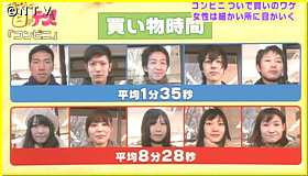 さらに、男女それぞれ買い物にかけた時間を調べた所、男性は平均で1分35秒だったのに対し、女性は8分28秒と、女性の方が7分近く長かったんです!