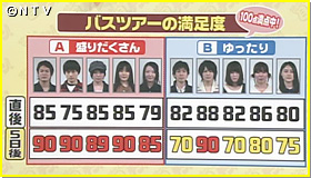 友だちだけでまわる乗用車チームは和気あいあい。一方バスツアーに参加するAチームの3人は、周りのツアー客が気になるのかなかなか会話が弾みません。周りを気にせず4人だけで楽しむBチームに対して、常に集団で過ごすAチーム。そして午後7時ツアー終了。初対面の人と過ごしたバスツアーはどのくらいストレスがたまったのか?機械で唾液からストレスの度合いを計測。その結果・・・Aのバスツアーチームの方は、Bの乗用車チームに比べて、ほとんどストレスがたまっていませんでした!なぜバスツアーチームはストレスがたまらなかったのか専門家に伺うと「バスの場合、運転手さんはプロなので気を使う必要はないですし、初対面の人たちの中でとりあえず回りに迷惑をかけていなければ一人一人バラバラにしていても大丈夫という安心感があって、逆に気楽に自由に行動できたんじゃないか」とのこと。