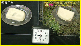 タイムに防腐効果があれば、お餅は普通より傷みにくくなるはずですが、2日経っても、それぞれのお餅に大きな変化はありません。ところが3日目!タイムがない方のお餅からみるみる青カビが生えてきたんです。よく見ると、青カビ以外の黄色いカビや白いカビも!一方、タイムを置いたお餅は、青カビをつけたにも関わらず、見た目には全く変化は見られず、きれいな状態を保っています。この両方の“差”を生んだタイムの力を専門家に伺うと・・・「タイムの中には“チモール”という、非常に防腐作用、殺菌作用の強い成分があるため、お餅がカビなかったのでは」。
