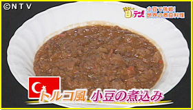 まずは、トルコ料理。トルコのおふくろの味、ヒヨコ豆の煮込みを小豆で作ってみよう!