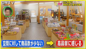 道の駅でついつい買い物をしてしまうもう一つの理由、それは店内のレイアウト。専門家によると、「道の駅の場合は、郊外に立地しているため、空間を贅沢に使える。そうすると、商品の品質が同じであっても、より高く見える。より良い品質のものに見えるということがある」。確かに、道の駅の店内は、スーパーやコンビニとは違い、空間を広く使っています。