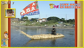そこで考えついたのが、"ススキで舟作り"。竹で枠を組み、そこに大量のススキを詰めて、ススキ舟が完成。浮かべてみると…ススキの舟は見事に浮きました!