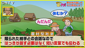 そして東北弁はボソボソと話し、更に言葉が短いという特徴もあることが分かりました。これは、やはり寒さによるものなのか!?専門家に聞いてみると、東北弁が寒さでボソボソした話し方になったというのは俗説であるとのこと!東北は典型的な農村型社会。つまり非常に小さなコミュニティで、いつも限られた相手と会話をするので、ハッキリ話さず、短い言葉でも伝わります。そのため、言葉の合理化が進みあのような話し方になったとのことです。