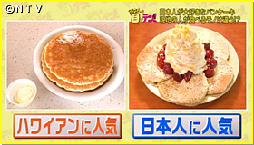 そこで現地の人が集まるパンケーキ屋さんに行ってみると、皆さん食べているのは、何も乗っていない薄焼きのパンケーキ。これにシロップをたっぷりかけていただくのが、王道のハワイアンスタイル。パンケーキはスクランブルエッグやソーセージなどのおかずを合わせて食べる、いわばご飯のような食べ物だったんです。しかも、その時も、甘いシロップをかけるそうです。ではなぜ生クリームやフルーツがトッピングされたパンケーキが日本人に人気なのでしょうか?
