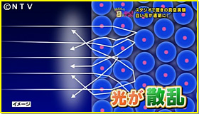 ところが、白い花には色素はなく、白く見えているだけだというんです。秘密は、その細胞にあります。花びらの断面を横から顕微鏡で拡大してみると…黒く見えているものが細胞の隙間に入り込んだ空気。花の細胞と空気では光の屈折率が違います。そのため、光が様々な方向に散乱し反射して白く濁って見えるのです。細胞の中の「空気」を抜いて、代わりにそこに水が入った場合、水は花の細胞と光の屈折率がほぼ同じであるため光は散乱せず通過します。その結果、花は透明になったというわけなんです。