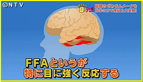 でも何故目元を似せるざわちんメイクはホンモノにそっくりだと感じるのでしょうか?専門家に伺うと「脳の中には顔だけを認知するFFAという特別な場所があるんです。そこが特に目に強く反応する。」とのこと。また、「目元は一番最初に見るところであり、非常に重要なところ。脳も反応するのが目の周囲。だから印象がダマされる。」そうなんです。