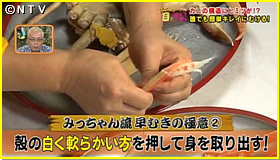 みっちゃん流早むきの極意その②"殻の白く柔らかい方を押して身を取り出す!"