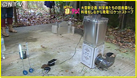 しかし、最大のポイントはこの強力な火力ではなかったんです!実はこれ発電も出来るというのです。発電の仕組みは、鍋の下がストーブの熱で熱くなるが、鍋の上は水が入っているため100℃より熱くなりません。その数百℃の温度差を使って発電する装置が鍋に入っているんです。使えば、ライトをつけたり携帯を充電することも出来ます。エコなロケットストーブに松村先生も感動!