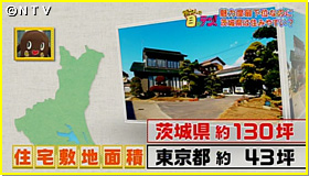 茨城県の住宅敷地面積は全国1位!その平均は130坪と東京のおよそ3倍。あるお宅では敷地の中にもう一軒家があり、これは茨城県ではよくあることなんだそう。茨城の暮らしに詳しい流通経済大学 社会学部の香川教授によると、茨城は自然が豊かな土地柄で、県全体の中で、住める面積比率もとても大きい。多くの方が茨城での生活に満足しているとのこと。じつは今からおよそ1300年前の書物「常陸国風土記」にも、この地方の事は「土地が広く、海山の産物も多く、人々は豊かに暮らし、まるで理想郷のようだ」と書かれているんです。茨城県は他の地域からみると魅力は低いけれど、住んでみると豊かで暮らしやすい場所ということがわかりました。