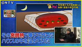 夜は障子紙の中に動物のフンを入れてやって、その発酵熱で障子紙で作ったハウスの中を温めていたっていう話を聞いたことがあるんです。その江戸時代にやっていたようなことが、ここでも出来るんじゃないかな」と、江戸時代に使われていた自然エネルギーをこの温室に利用しようというのです。しかし、根本先生が目を付けた「発酵熱」とは一体どういうものなのでしょうか?発酵熱とは、微生物が有機物を食べ、分解した時に放出する熱のこと。微生物が活発に活動できる環境さえあれば、どんどん微生物が繁殖して大きな熱エネルギーを生み出すことができるといいます。さすが自然エネルギーの専門家!薪とは違い、微生物の力なら火事になる心配もなく、手間いらずです。温室を蘇らせ、作物を作ることは出来るのか?根本先生の挑戦が始まりました!
