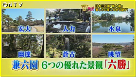 フランスのミシュラン・グリーンガイド・ジャポンで星3つを獲得した、世界的にも人気の高い名園、「兼六園」。6つの景勝を兼ね備えていることから兼六園という名がつきました。その6つの景勝とは、明るく開放的で広々とした「宏大(こうだい)」、静かで緑が鬱蒼と茂る「幽邃(ゆうすい)」、橋や植栽など人の手が加わった「人力(じんりょく)」、手つかずの古びた自然を表す「蒼(そう)古(こ)」、池や滝、川などの水の景色「水泉(すいせん)」、高台から遠くまで見渡せる「眺望(ちょうぼう)」。