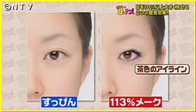 黒いアイラインではなく、茶色のアイラインを使うことで、2大錯覚を最大限活かすことができるのだ!