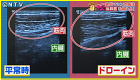 エコーを使ってドローインをした時のおなかの中の様子を見てみると、確かに平常時よりも筋肉で内臓が押さえられています。1日に何回か繰り返しドローインを行っていくと、意識しなくても普段から出来るようになるとのこと。これで内臓の浮遊感を解消できるはず!