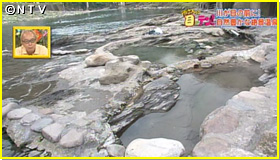 続いて、2ヶ所目のオススメ温泉は山の中にある温泉。一般の観光客はあまり来ないとのこと。先生に着いて行くと、そこにあったのは小さな浴槽。おまけにかなり汚れが気になります。実はこれ、鉄分を多く含んだ「鉄泉」。浴槽が茶色くなっているのも、ただの汚れではなく温泉成分の鉄が付着しているためなんです。この温泉は裸でも大丈夫なので日本のスタイルで!