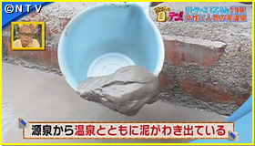 二人が訪れたのは、台南市にある関子嶺温泉。先生オススメ、女性に人気の温泉一体どんな温泉なのでしょうか?それが、泥温泉!泥温泉は世界でもとても希少なんです。お湯をすくってみると細かい泥が入っています。源泉から温泉とともに、泥が地上に湧き出ているんです。この泥温泉の魅力を見せもらうためにやって来たのは泥が貯めてある桶。ここの泥を身体に塗ります。