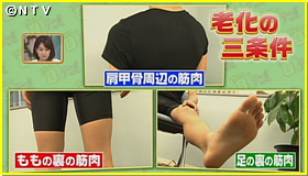 実際にユージがやってみると、ゆっくりした動きなのにすごい汗が!ここで筋肉のプロ・須藤教授によると、この運動で老化の三条件がクリアできるとのこと。老化の三条件とは、肩甲骨周辺、モモの裏側、足の裏の筋肉が衰えること。須藤教授によると、この3つは、普段の生活ではあまり伸ばされていないので血行が悪くなってしまうそうです。すると筋肉に老廃物がたまりしなやかさを失って固くなってしまいます。その結果、肩こりや腰痛、バランスが悪くなって転倒などの原因になるんです。「カマエ」をすると、ヒジを横に張ることにより、肩甲骨周辺の筋肉に力が入っています。さらに、中腰の姿勢を保つために、モモの裏にも力が入ります。そして足の裏にも踏ん張るため、力が入っているんです。カマエは、老化の三条件の筋肉全てに、力が込められている状態なんです。力を入れると筋肉が収縮し、そこに通っている血管が圧迫され血流の勢いが増します。これにより、血液が筋肉にたまっていた老廃物を押し流し、固くなっていた筋肉がしなやかになるというんです。須藤教授は、この姿勢に呼吸法を取り入れると、さらに効果がアップするといいます。