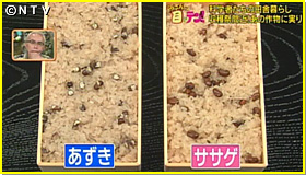 お赤飯といえば小豆というイメージがありますが関東圏ではササゲを使います。小豆はササゲと比べ皮が薄いため調理するとぱっくり割れてしまいます。これが、切腹を連想させるとされ武家中心の社会だった関東圏では、今でもお赤飯には皮が割れにくいササゲ豆なのです。今回収穫したのは、だるまに似た形をしていることから、だるまササゲと名づけられた品種。スタッフも手伝い、完熟したササゲをもいでいくとバケツ2杯分も収穫できました。これを風通しの良い「たも」に入れ、収穫祭の頃まで物置で保存します。気になるのは、もう一つのお赤飯のキモ「もち米」も松村先生の肩ほどまでに成長。もみの中で徐々に大きくなるお米によって稲穂がおじぎを始める10月上旬に稲刈りを行う予定です。
