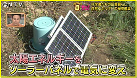 連日、記録的な猛暑が続いた2015年の夏。田舎暮らしの土地では、雨がほとんど降らなかったため、畑がカラカラになり作物に水をやらないといけませんでした。水田の脇に作った池から、ジョーロとバケツで水を汲む作業。陽の光がギラギラと降り注ぐ中、畑と池を何往復もするのは、なかなか大変で体力を使います。すると、松村先生は「根本先生、ポンプ作ってくれないかな…なんかいいの考えてよって言っておいてください」とのこと。これには、連日水汲みのお手伝いをしていたスタッフも大賛成!すぐに自然エネルギーの専門家・根本先生に依頼しました。そして後日、根本先生が持ってきたのが「ソーラーポンプ」。ポンプはお風呂のお湯をくみ上げるのに使う市販の製品。通常はコンセントをさし、電源から電気が供給されて動きますが、これをソーラーパネルにつなぎ太陽エネルギーから作られた電気で動くようにしてあるんです。