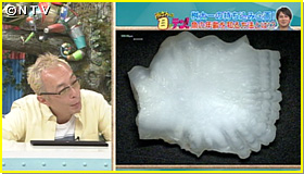 そして、後藤アナウンサーも発見!無事、両方の耳石を見つけることができました。実は、キンメダイの耳石は、かなり大きい部類になります。