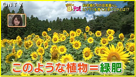 そこでヒマワリを植えれば、残っている肥料を吸収してくれるのです。ヒマワリは花が枯れ種ができる前に、すべて粉砕し、土の中に混ぜ込んで肥料にします。こういうヒマワリのような植物を「緑肥」と言い土の中に混ぜた後は、ゆっくりと分解されるので肥料の成分が地下水へ流れ込みにくいのです。使った肥料で余った分をヒマワリに吸収させ再利用するのです。このような循環型の農業こそ松村先生の専門なのです。