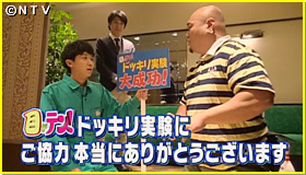 いよいよドッキリ大実験スタート!現場は都内のとある喫茶店。そこに「目がテン!」のロケの打ち合わせと称して、ターゲットを呼び込み、偽のプロデューサーと話しているうちに様々なドッキリが振りかかるという設定です。