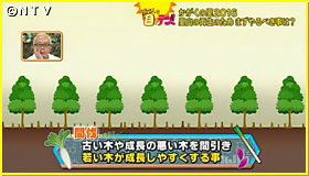 里山再生プロジェクト、最初の課題は若い木が成長しやすくするため古い木を切って間引くこと。これを間伐といい、残った若い木は太く真っ直ぐに育つことが出来るのです。間伐するだけではなく、出た資源をあますところなく利用すること。それが里山の再生につながるといいます。里山の再生に向け、一歩を踏み出した科学者たち。すると、間伐の必要性を知った松村先生からあるアイディアが。